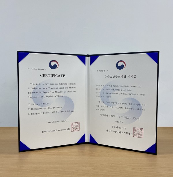 엔소프트가 수출유망중소기업으로 지정되었습니다.
